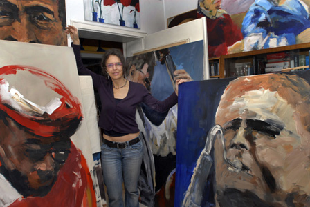 kein eigentliches Atelier. Sie malt in einem Arbeitszimmer ihrer Wohnung