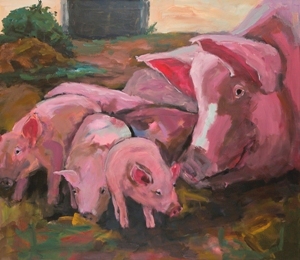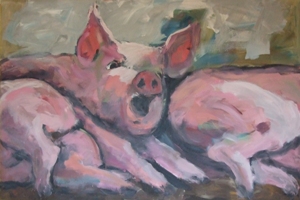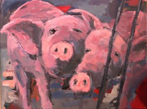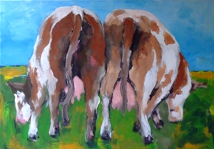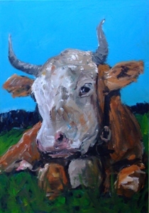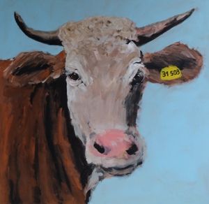 Die Kuh mit dem Stanzohrring 90 cm x 90 cm |